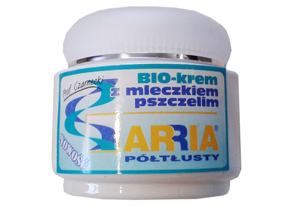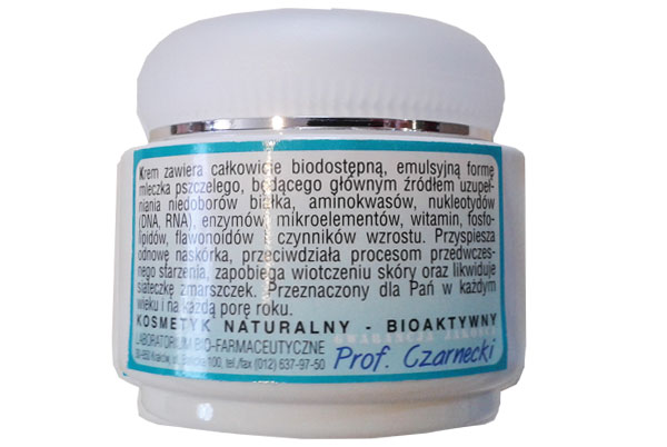 Biokrem z mleczkiem pszczelim półtłusty Krem zawiera całkowicie biodostępną, emulsyjną formę mleczka pszczelego. Krem jest głównym źródłem uzupełnienia niedoborów białka, aminokwasów, nukleotydów (DNA, RNA), enzymów mikroelementów, witamin, fosfolipidów, flawonoidów i czynników wzrostu. Przyspiesza odnowę naskórka, przeciwdziała procesom przedwczesnego starzenia, zapobiega wiotczeniu skóry oraz likwiduje siateczkę zmarszczek. Przeznaczony dla Pań w każdym wieku i na każdą porę roku. |