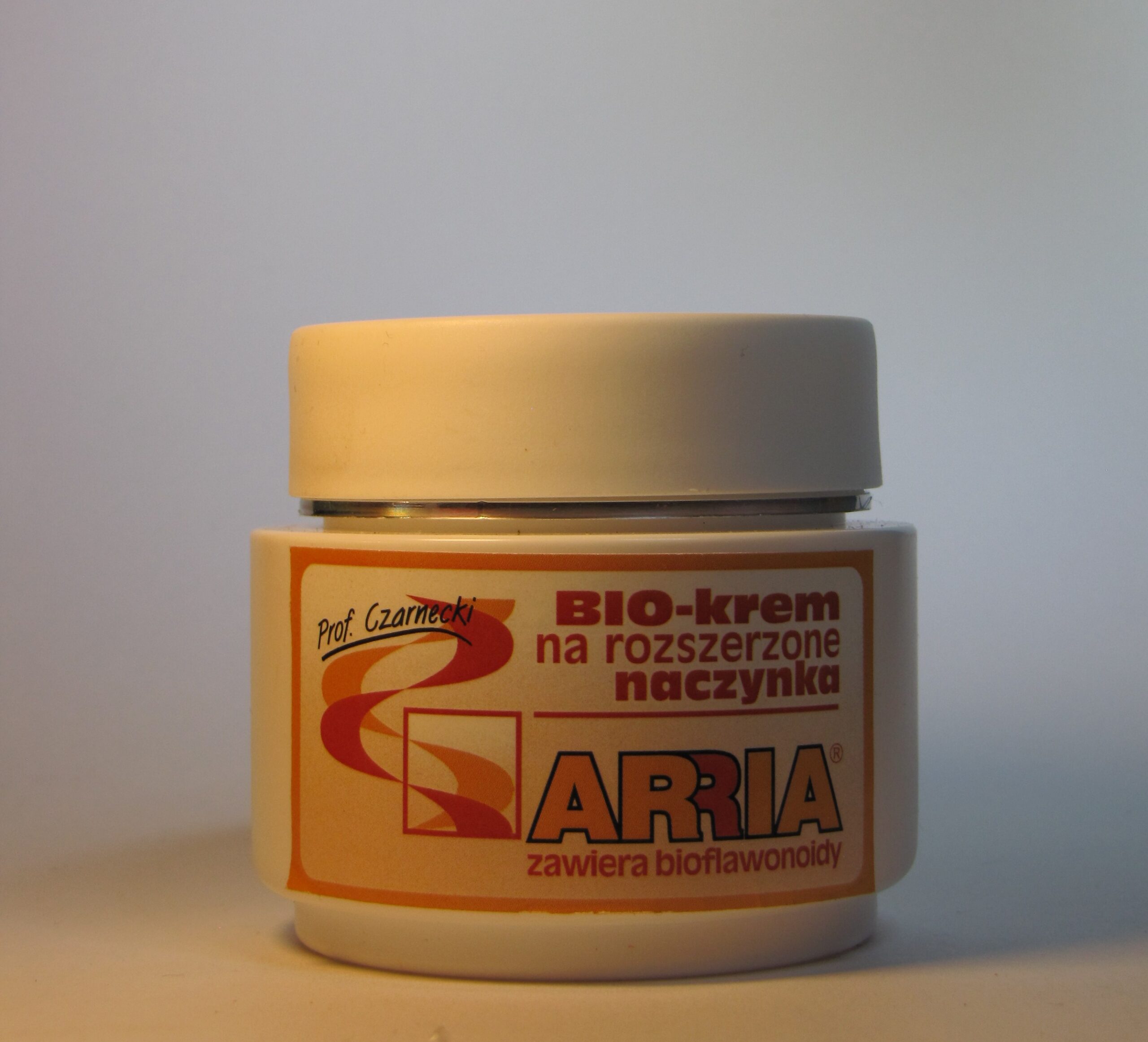 Krem  Arria na rozszerzone naczynka  wykazuje silne działanie wzmacniające na ścianki naczyń krwionośnych. Krem znosi szkodliwy wpływ wolnych rodników oraz zapobiega skutkom tzw . „stresu tlenowego” w skórze . Zmniejsza łamliwość i kruchość naczyń krwionośnych skóry.